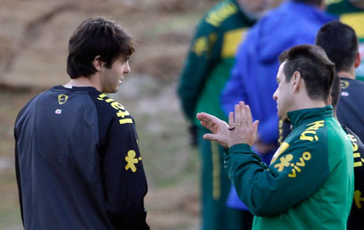 דונגה וקאקה באימון ברזיל. "ספג כרטיסים בגלל העבירות עליו" (רויטרס)