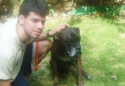 בלייד עם בן המשפחה בגינה הביתית (צילום: שמואל שגב)