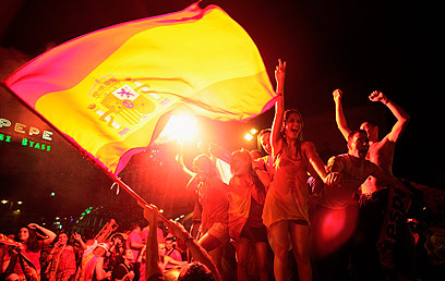 בכיכר המרכזית של ברצלונה הצטופפו 75 אלף איש ובפמפלונה, בה מתקיים בימים אלה פסטיבל מסורתי (בו נוהגים התושבים לרוץ עם שוורים ברחוב) עברו החוגגים להריע לנבחרת ספרד.