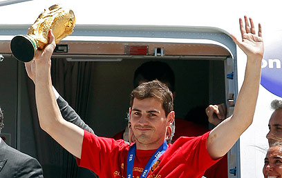 פחות מיממה לאחר הזכייה ההיסטורית של נבחרת ספרד במונדיאל, נחתו אחר הצהריים ויסנטה דל בוסקה ושחקניו בשדה התעופה במדריד. אלופת העולם הטריה זכתה לכבוד של מלכים עם נחיתתה והתקבלה בעידוד מאסיבי מצד עשרות אלפי אוהדים משולהבים.