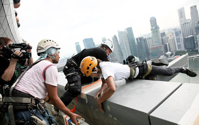 בסינגפור עובדים מסודר - לכל דבר ועניין יש טופס מתאים. גם לבייס ג'אמפ. רוצים לקפוץ מהגג? אין בעיה, תמלאו את הטופס הזה הזה והזה, וגם את כל העשרים האלה, אחרי זה אנא פנו לאחראי בממשלה על המרחב האווירי, אחריו לכו לאחראי על המרחב האווירי הספציפי שמעל מרינה ביי סנדס, אחריו אנא הפגשו ומלאו את הטפסים המתאימים לביצוע פעילות נחיתה בתוך מי הים? אה, לא תנחתו בים? זה כבר טופס אחר. אחרי זה תיפגשו עם השר המתאים בממשלה האחראי למפגני צניחה, ובתוך המשרד שלו חפשו את הפקיד שאמון על טפסי התחייבות לתנאי נחיתה בתוך מים, כדי שלא תעיזו לזהם את המים, שכן הם מיועדים להתפלה.