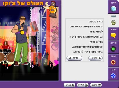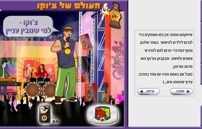 עם כניסת המשתמש הצעיר לפינה זו, מייד יתבקש לכתוב שם ומקום מגורים, ויחל בהכנת פרסומת למותג דמיוני בשם צ'וקו.