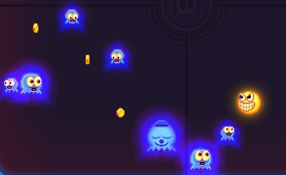 זו גירסה מטורפת במיוחד של המשחק, בה אין קירות. אתם מרחפים בחלל באמצעות העכבר, ורוחות רפאים מופיעות ממגוון סוגים מופיעות ורודפות אחריכם. עליכם לאכול עיגולים זהובים, ועיגולים כחולים זוהרים יאפשרו לכם לאכול את רודפיכם.