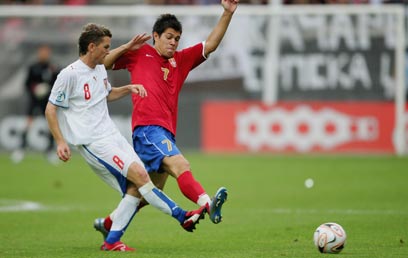 מילאן סמיליאניץ' במדי נבחרת סרביה (גטי אימג'ס)