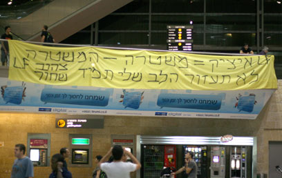 אוהדי בית"ר לא הגיעו לנתב"ג, דגליהם כן (צילום: יועד כהן)