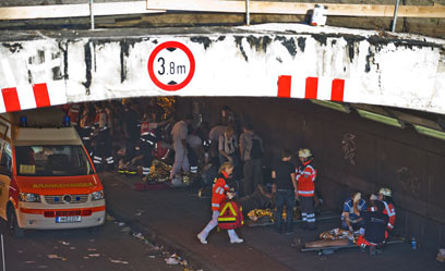 טרגדיה במסיבה. המנהרה בדויסבורג, אתמול (צילום: רויטרס)