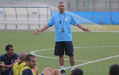 פרדי דוד עם חניכיו. המאמן ממשיך לחפש שחקנים זרים (צילום: עוז מועלם)