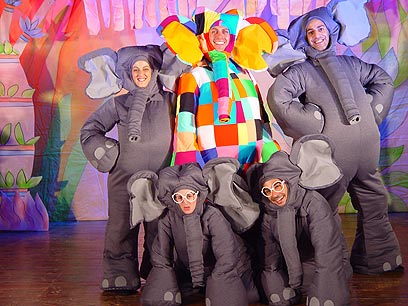תיאטרון פתוח שמארח הצגות ילדים. משתתפי "בנצי הפיל"