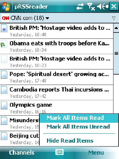 - סימון פריטים לפי חדש, נקרא או לא נקרא, עם אפשרות להסתיר פריטים שנקראו.