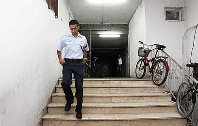 שוטר בכניסה לבניין (צילום: עידו ארז)