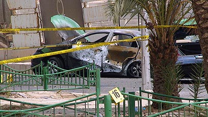 מכונית שנפגעה מהרקטה בעקבה (צילום: רויטרס)