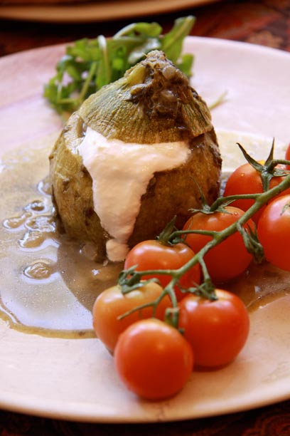 קישוא ממולא בכל טוב, החל מאורז, מנגולד, צנוברים ועוד. באדיבות בית קפה קונדיטוריה "עוגתה" בקיבוץ כנרת.