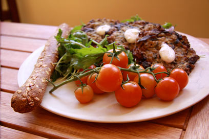 תפוחי אדמה, קישואים ופטריות שיחד יוצרים קציצות שיכולות להיות כמנה עיקרית או ליד. באדיבות בית קפה קונדיטוריה "עוגתה" בקיבוץ כנרת.