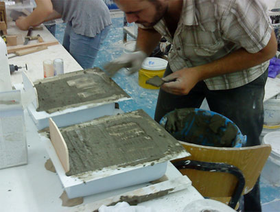 לינסקי במהלך הכנת התבנית למכונה (צילום: סשה פליט)