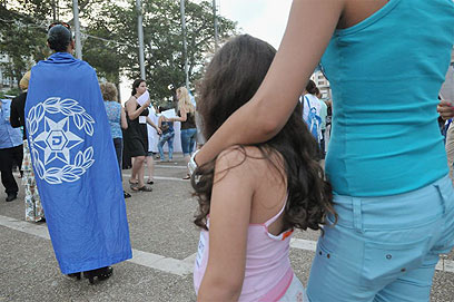 משתתפים בהפגנה בכיכר, הערב (צילום: ירון ברנר)