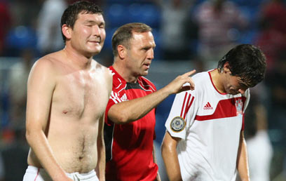 ליבי ליבי עם הקזחים. שחקני אקטובה מתרגלים ללחות (צילום: אלי אלגרט)