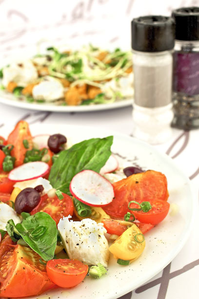 אחרי ארוחת החג הכבדה כדאי שתתנו לבטן לנוח עם סלט שמשלב מוצרלה, בצל, והמון עגבניות צבעוניות. פשוט להכנה ויכול להיות ארוחה שלמה