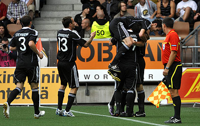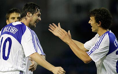 מילבסקי וארמנקו חוגגים שער לקייב (AP)