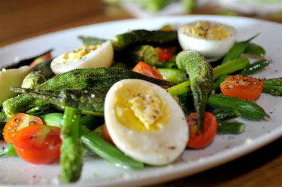 - מסדרים את הביצים בתוך הסלט ובתאבון.