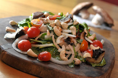 סלט תרד, פטריות ועגבניות שרי בוויניגרט תפוחים (צילום: ירון ברנר)