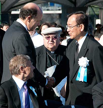 שגריר ארה"ב וראש עיריית הירושימה. ביקור ראשון (צילום: AFP)