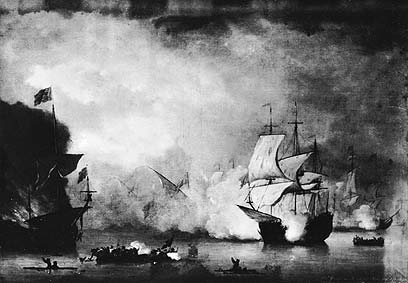 ציור המנציח את ההתקפה של שודדי ים ברברים על אוניית הסחר "קינגפישר" ב-1 במאי 1681 (מתוך מאגר Gettyimages Imagebank)
