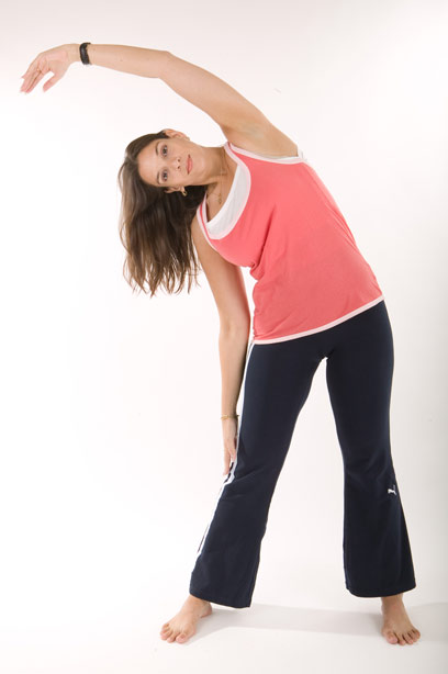- מותחים את הרגל המקופלת לצד הנגדי, ומפנים את הראש לצד השני.