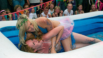 מתאבקות בבריכה. ביג ביג צ'יל (צילומים: AFP)