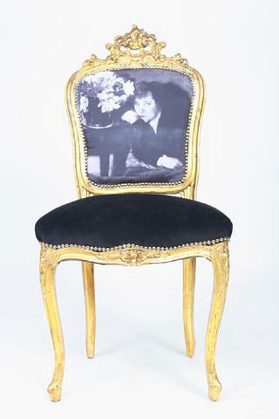 יימכר ברקע מוזיקה קלאסית וקאווה. כסא של פטריסיה גלמן (צילום: דן פרץ)