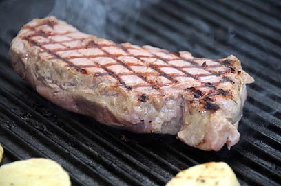 בתערוכת "מבשלים" האחרונה החלטתי לקנות לעצמי מחבת פסים איכותית. מאז היא ישבה בארון ללא שימוש, עד לאותו ערב שישי. פרסתי את תפוחי האדמה ואת הבצל, ציפיתי את הזוקיני במעט שמן זית, זריתי מלח ופלפל והבערתי את האש מתחת למחבת. הנחתי את הסטייק והירקות על המחבת, והחלטתי שאם כבר אני מכינה סטייק עם ירקות קלויים, מה שימלא את הבית בעשן, לפחות שזה ייראה כמו במסעדה. כלומר, אחרי כמה דקות יש להזיז את האובייקט כ-30 מעלות ואז נוצר האיקס המפורסם שכאילו מקועקע על הסטייקים במסעדות, מה שתמיד מפליא את הסועדים ומגרה את התיאבון.
