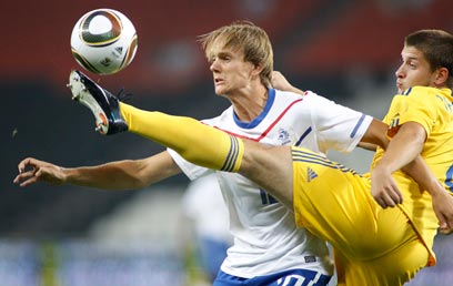ירוסלב רקיטסקי (מימין) מאוקראינה עם ההולנדי סיים דה יונג (רויטרס)