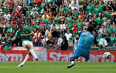 חאבייר הרננדס מעלה את מכסיקו ליתרון (רויטרס)