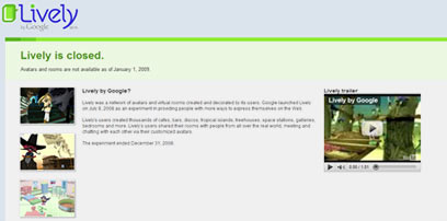 למרות שמו, זהו אחד השירותים המתים של גוגל. Lively היה אמור להיות התשובה של גוגל ל-Second Life בתחום העולמות הווירטואליים. ארגונים, שהיו אמורים להיות הלקוחות הפוטנציאליים של האפליקציה, לא התלהבו, ואם חושבים על כך שגם המקור נחשב גימיק יחצ"ני לא רלוונטי, הסגירה המהירה לא הפתיעה במיוחד.