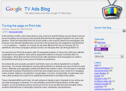 בדיעבד וגם בזמנו, הרעיון שגוגל תפיץ פרסומות בעיתונים מודפסים וברדיו נשמע טיפשי, כי הרי לא מדובר במדיום בו פועלת החברה. נחשו מה, התברר שזה היה רעיון טיפשי. אלה היו שווקים שהצטמקו במהירות, רוויי תחרות ומו"לים שמרניים. שירות מודעות הדפוס נסגר בינואר 2009 ואילו שירות מודעות הרדיו נסגר זמן קצר אחריו.