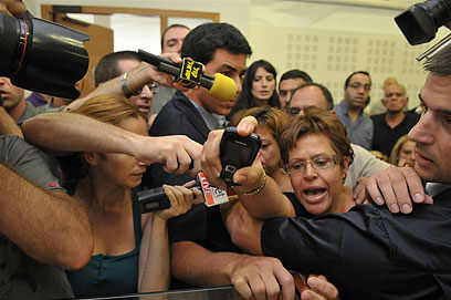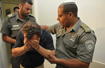 מהומה בבית המשפט. רגעי כניסתו של בן-דרור לאולם (צילום: ירון ברנר)