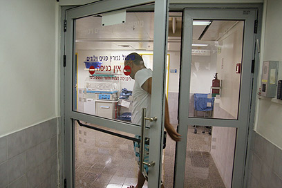 האב בכניסה לטיפול נמרץ ילדים ברמב"ם (צילום: אבישג שאר-ישוב)