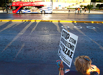 הפגנה מחוץ לפגישת נתניהו עם פפנדריאו (צילום: רויטרס)