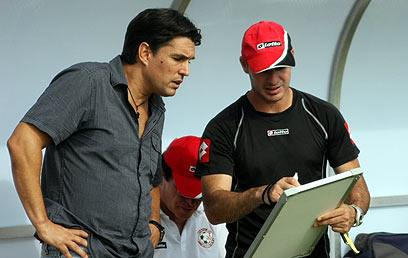 פרוספר אזגי (משמאל). שלוש נקודות ראשונות בכיס (צילום: רועי עידן)
