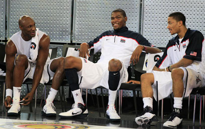 אודום, דוראנט ורוז מרוצים על הספסל האמריקני (צילום: AP)