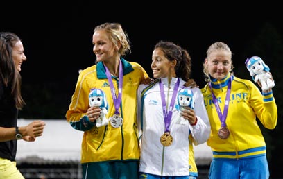 האם גם רותם שור תעלה לפודיום כמו הבנות הללו בסינגפור? (צילום: AP)
