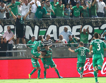 מוחמד גאדיר והחברים בירוק חוגגים בבלומפילד (אלי אלגרט)