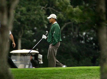 לא באמת משוחרר מהעבודה. אובמה בגולף (צילום: AP)