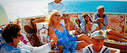 מאמה מיה: באופן מפתיע, פלטת הצבעים בסרט, שמגיעה במקור זרחנית למדי ומוצגת כך על חלק ממסכי טלוויזיה מתחרים, נראית על השארפ באופן טבעי למדי. עם ירוק וכחול משכנעים, מלבד "כתמתמות" מסוימת בגוון העור שנראית כאן לעין.