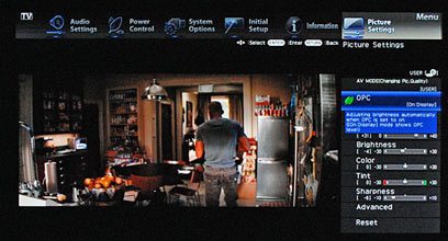 נמשיך עם סעיף "חברת החשמל": ב- LE810 ניתן להפעיל שני מצבי חיסכון באנרגיה, האחד מווסת את הצריכה בהתאם לתוכן המוצג על המסך (בדומה לאופן בו פועלת מסך פלזמה), והשני מוסיף לפעולה גם את חיישן התאורה OPC שמתייחס בהתאם גם לאור בחדר.