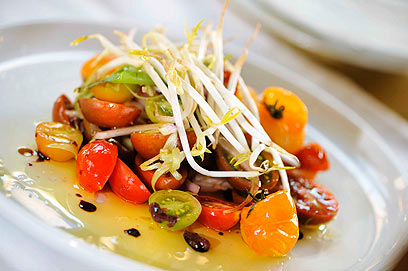 סלט עגבניות בוויניגרט בלסמי עם נבטים ועלי רשד
