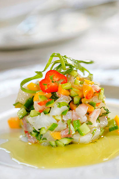 - להגשה: גודשים על צלחת אישית כף נדיבה של הטרטר, זולפים מעט שמן זית ומניחים לצידו פרוסת מנגו דקה.