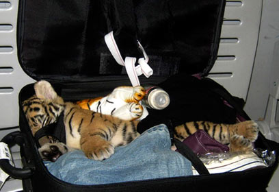 תושבת תאילנד ניסתה להבריח לאיראן גור טיגריס נדיר המצוי בסכנת הכחדה, בתוך מזוודה מלאה בבובות טיגריסים קטנות. בבדיקת שיקוף, גילו אנשי המכס את הטורף הקטן כשהוא מטושטש ותחת השפעת סמי הרדמה. תעשיית סחר בחיות בר ואבריהן מגלגלת מיליארדי דולרים ברחבי העולם. כיום הטיגריסים נמצאים בסכנת הכחדה חמורה בטבע