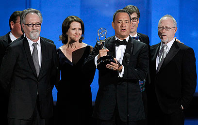 הנקס, מיוצרי "הפסיפיק" וצוות הסדרה. המיני-סדרה הטובה (צילום: AP)