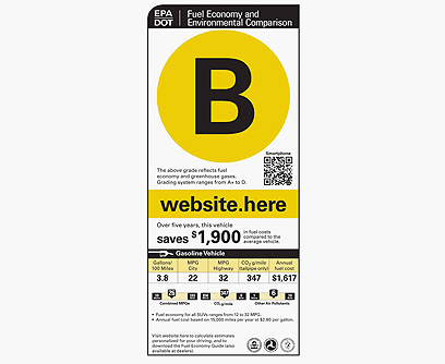 הממשל האמריקנית מעוניין לחייב את יצרניות הרכב להצמיד לכל מכונית מדבקות שיציגו את כל הפרטים אודות רמת הזיהום וצריכת הדלק שלה. מכוניות חשמליות יקבלו את הציון הטוב ביותר
