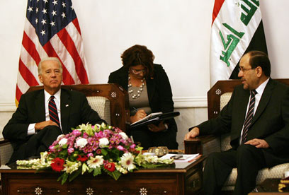 ראש ממשלת עיראק הצהיר היום (ג') שנסיגת הכוחות הלוחמים של צבא ארצות הברית מסמלת את שיקום הריבונות של ארצו. נורי אל-מליכי אירח את סגן נשיא ארצות הברית, ג'ו ביידן, לרגל העברת האחריות במדינה לידי כוחות הביטחון המקומיים.